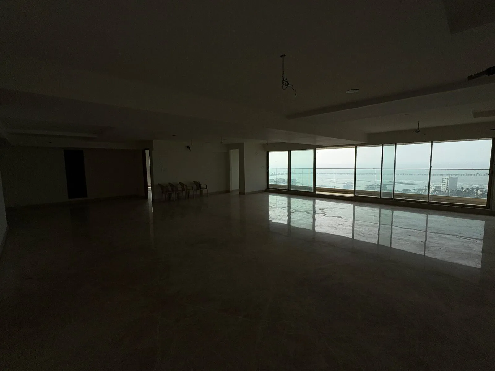 Approximately 5,000 square feet of usable carpet area, with large french windows in the living room with a balcony. Space for a kitchen & utility areas. Provision for separate staff quarters, plus washroom and space for further utilities. Private elevator plus 3 elevators for guests and services. The apartment is on a higher floor- above 12th.